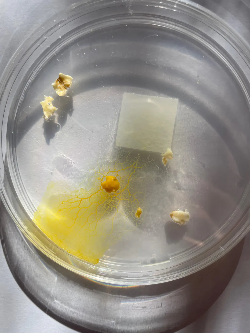 ▶️ La souche Badhamia : De couleur orangée, ce blob va se réveiller en quelques heures seulement ! Ses déplacements se font en auréoles, sa croissance est spectaculaire, et il ne mettra que 2 ou 3 jours pour coloniser entièrement sa boîte de Petri.