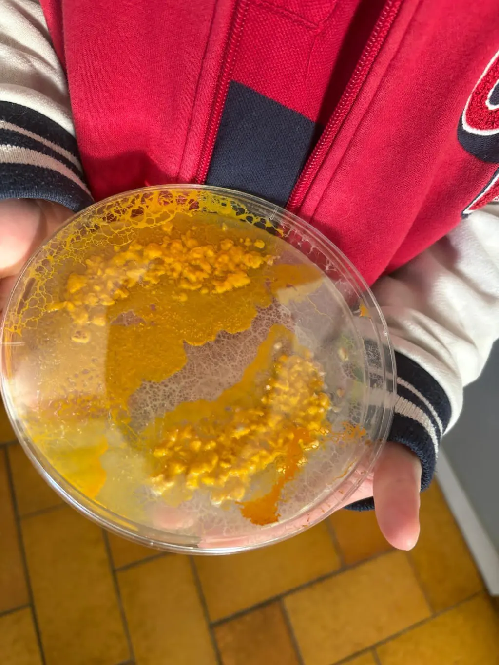 Faites à présent chauffer de l'eau et l'agar-agar fournis dans notre coffret, puis disposez votre blob au milieu de la boîte de pétri sur la gélose avec quelques flocons d'avoine et un peu d'eau.
